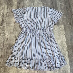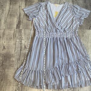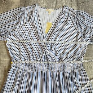 Michael Kors Blue and White Striped Faux Wrap Dress
