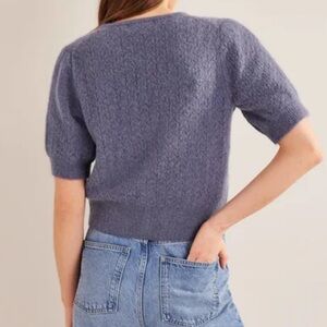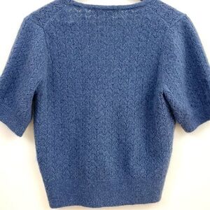 Chic lavender cardigan with button-up front. Soft texture and short sleeves. Ideal for layering. Smoke/per free home. Good used condition, no flaws.