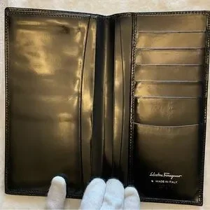 Salvatore Ferragamo Authentic Vintage Shiny Black Leather Slim Bifold Wallet