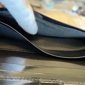 Elegant black leather piece. Crafted in Italy.