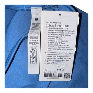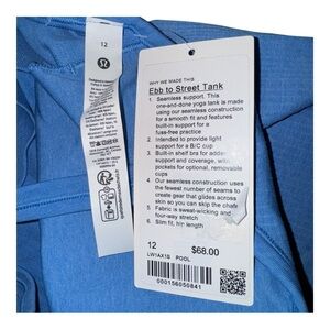 Move freely and comfortably in the Lululemon Ebb to Street Tank Top in Pool Party (Size 10). Designed with seamless construction and built-in support, this one-and-done tank is perfect for yoga, pilates, or low-impact workouts.