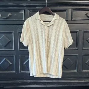 Stylish beige shirt with subtle patterns. Ideal for casual wear. Short sleeves and button-down design.