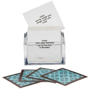 TableTopics Dinner Party set ensures every guest has a fantastic time with these thought-provoking and entertaining conversation starters. TableTopics® will help get the conversation rolling while you are busy with other hosting tasks.