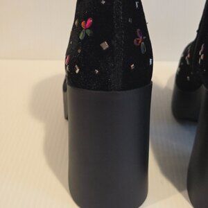 Betsey Johnson Womens Harriet Black Ankle Boots Shoes Size 9 Rhinestone Clusters