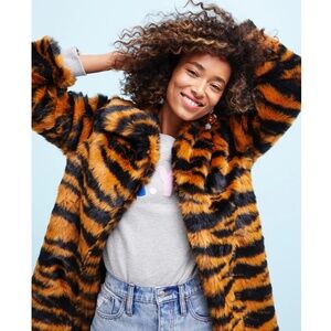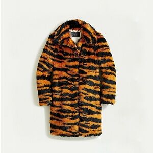 J. Crew Collection Tiger Faux Fur Coat in Caramel Black