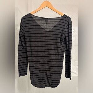 GAP • Women's Long Sleeved V-Neck Tee • Size Small • Black and Gray Stripes • Slightly Marled • Soft and thing material • Pre-Loved •