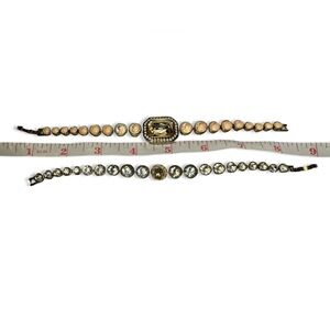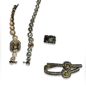 Listing includes 2 bangles and 2 tennis style bracelets with buckle clasp and ring.