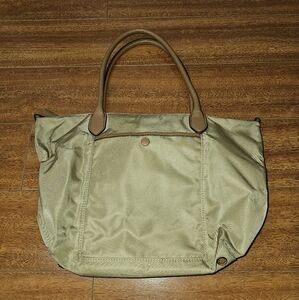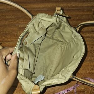 This elegant tan tote bag is perfect for any occasion. Its versatile design and neutral color make it a must-have accessory. Does have some very minor marks that can be wiped off.