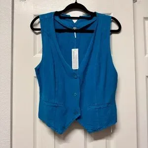 Young Fabulous & Broke| NWT Women’s Size large Linen Blend Cerulean Blue Vest