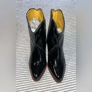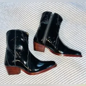 Step out in style with these sleek black patent leather ankle boots. Perfect for any occasion, they offer both comfort and elegance.