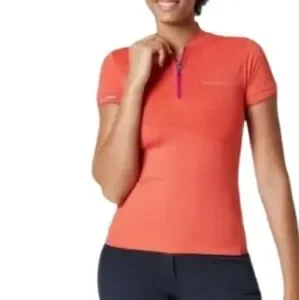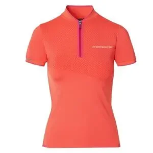 Porsche Women's polo shirt sports activity, elevate your activewear with this coral tee from Mammut. Ideal for workouts or casual wear. Enjoy comfort and style. Gently used great condition measurements length 25" armpit to armpit 19"