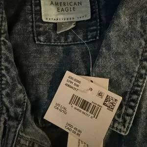 American Eagle Outfitters AE CROPPED DENIM BUTTON-UP SHIRT