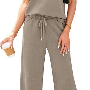 Features: Light and silky spacer fabric, ultra drapey with a soft feel, perfect for hot weather. The set includes a comfy crew neck short sleeve top and wide-leg crop pants with practical pockets, a flattering contoured back, and an elastic drawstring waistband for an easy, flexible fit.