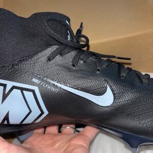 My teenage son wore these for a day. Great condition! Experience speed with Nike's Mercurial Superfly 10 Pro. Black and blue design for firm-ground play. High-top for support.