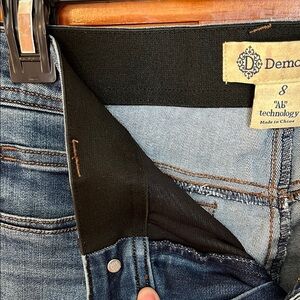 Elevate your wardrobe with these classic blue women's jeans. Slimming panels engineered to mold and hold and boost your assets!! Curve Equality!! They have manufactured blemishes on the right thigh and left pocket. Measurements are: Inseam 31”, rise 10”. 6 pocket style. Inside hidden panels for control and some elastic in the waist. Perfect for any occasion, these jeans offer both style and comfort. Non smoking home.