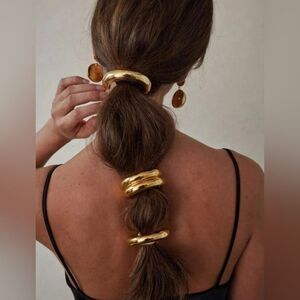 1 pc trendy minimalist metal scrunchie in gold tone hardware