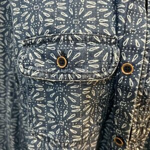 Express Blue Denim Button Down Shirt Geometric Print Women's Medium