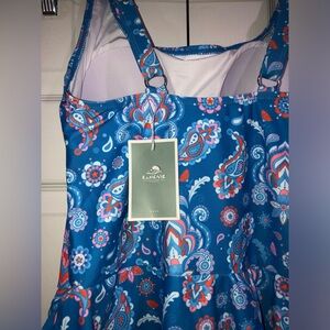 This bathing suit combining the full coverage of a swim dress and functionality of a one piece swimsuit. Designed for comfort and style, it's a must-have for any beach day. 82% Polyester, 18% Spandex. Hand Wash Only.