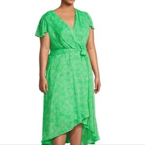 Chic high low dress by DKNY. Vibrant green with wrap design. Perfect for any occasion. size 18 new without tags.