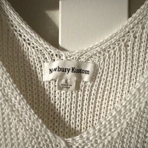 Elegant knit top by Newbury Kustom. Features a soft white cream color. Has a nice drape perfect for tucking in or leaving out. Nice no fuzzy/pill knit.