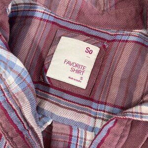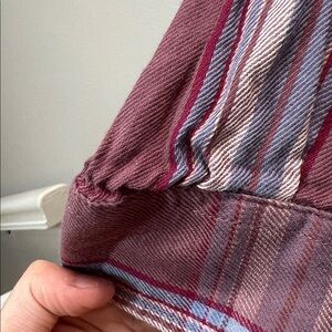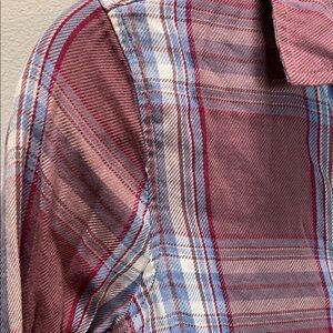 Keywords: plaid, flannel, thin flannel, pink, purple, wine, blue, periwinkle, white, magenta, kohls, brown buttons, comfortable, women’s flannel, tops for enbies, autumn, fall