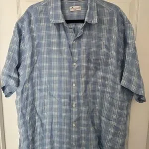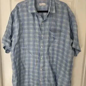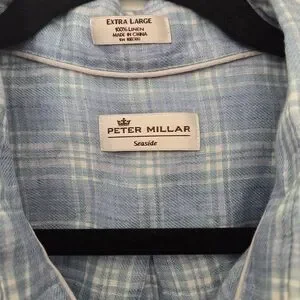 Peter Millar Linen Blue Plaid Shirt
