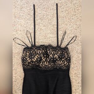 Stylish black dress with elegant lace overlay. Ideal for formal events.