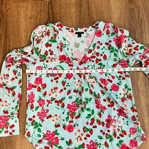 Ann Taylor Strawberry Floral Long Sleeve Top Sz XS