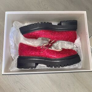 Brand new size 7.5 fits a size 7 better. Third picture was taken with no flash. They are covered in rhinestones. The color is Fuschia