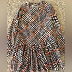 Vibrant plaid dress with a mix of colors. Perfect for any occasion. Has pockets. 100% cotton. Great fall transition piece. Xs would fit 4-5 T