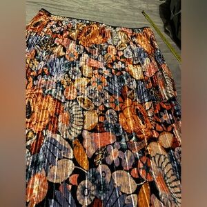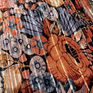 Brighten your wardrobe with this colorful floral skirt for fall. The bright velvet hues are absolutely gorgeous. Features bold orange, purple and pink hues. Perfect for work or play. Super soft, elastic waste band.