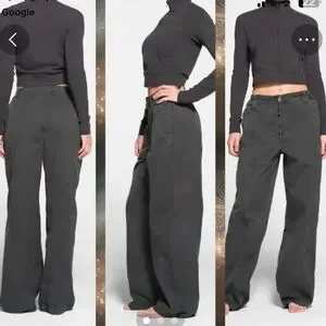 Color ash, never worn, elastic in waist, hidden button behind zipper. Super cute, wide leg.