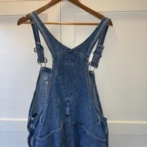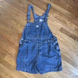 Vintage Calvin Klein Bib Overalls Shorts Jeans Denim Womens L Double Stone Wash