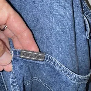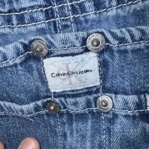 These Vintage Calvin Klein Bib Overalls Shorts in size L are a stylish and retro addition to any woman's wardrobe. Made of denim with a medium stone wash, these shortalls feature the iconic Calvin Klein brand logo and a comfortable regular fit. The classic blue color and 90s theme make them a versatile and timeless piece that can be dressed up or down for any occasion. Made in Mexico, these shorts showcase the quality craftsmanship and attention to detail that Calvin Klein is known for.