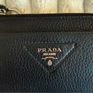 Prada Saffiano Keychain Wallet Logo Black/ Silver 1PP122