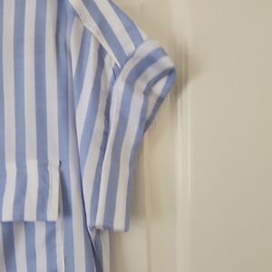 NWOT chic striped shirt with button-up front and 2 front pockets. Features a classic collar and cap sleeves.