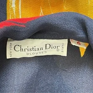 Vintage 1970s Christian Dior Paint brush strokes semi sheer button up blouse top