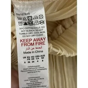 The PrettyLittleThing Cream High Waisted Pissed Wide Leg Pants in size 4 tall are a stylish addition to any woman's wardrobe. Made from lightweight polyester, these solid cream pants feature a high-rise waist and wide-leg design for a classic fit. The pants are accented with pleats and a flat front, making them perfect for a fun and bohemian look. With a zip closure and a 31.5-inch inseam, these dress pants are both comfortable and trendy, ideal for a hippie-inspired outfit.