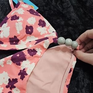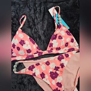 NWT Tanya Taylor Tia Bikini In Pink Fuschia Floral Size L 2 Piece FULL SET