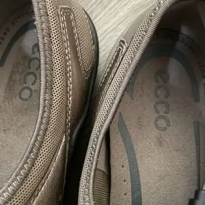 Slim, cute and comfortable Ecco slip on toggle sneakers in bronze gold and taupe.