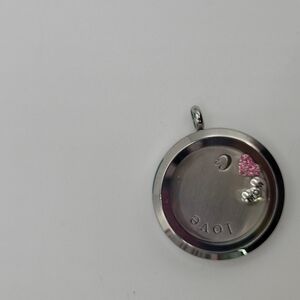 Origami Living Lockets Charm Pendant Necklace with MOM and pink heart