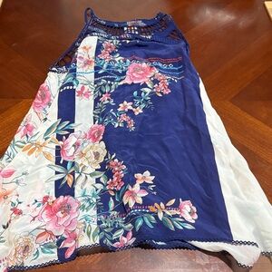 Johnny Was Floral Navy and Cream butterfly handkerchief style Tank Top