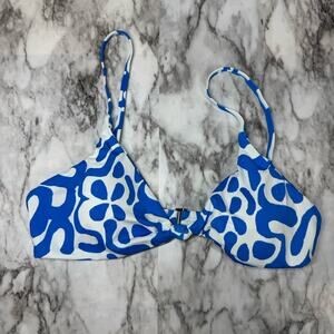 Dippin Daisy's Womens Tie Front Blue White Floral Swimsuit Bikini Top Size M
