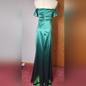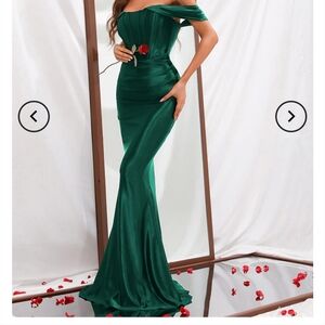 Turn heads with this chic one-shoulder green evening gown. Perfect for elegant occasions, its sleek design offers a flattering silhouette.