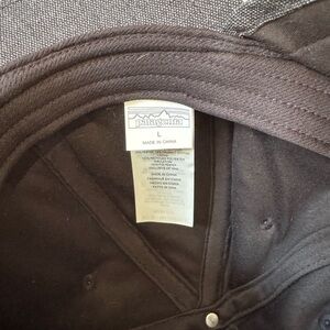 Patagonia cap in dark gray with ear flaps. Features iconic logo. Ideal for everyday wear. NWOT.