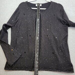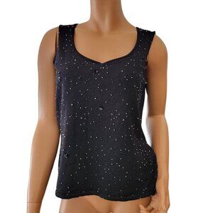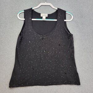 Beautiful Rena Rowan 2 piece sweater set. Women's size large. Black in color. Includes tank top and cardigan. Beaded/sequins. Pre-owned condition. Flaws: Missing a few beads. Please view photo's for condition and measurements as size may differ from tag. Smoke free home.