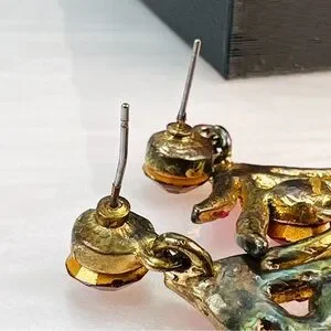 Gorgeous, vintage pink amber tones bling pierced earrings