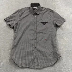 Moschino 30 years Button Shirt Short Sleeve Men 39 15 1/2 Preppy Luxury Black