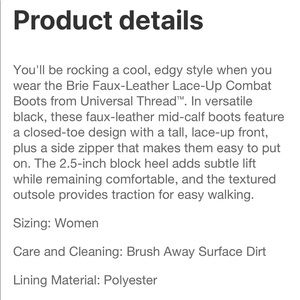 Universal Thread Women’s Black Brie Faux Leather Combat Platform Boots