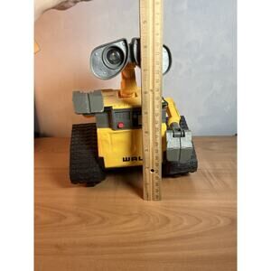 This Disney Pixar Wall-E robot figure is a must-have for any fan of the beloved movie. It features a yellow color scheme and can speak and move with lights. Measuring at 9.0 inches, it's the perfect size for display or play. Note that this item does not come with a remote (still makes cute sounds and eyes light up).